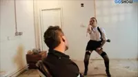 The video begins with the blonde girl seductively walking towards the camera, her ample tits bouncing beneath a tight top.As she struts past the camera, her miniskirt rides up, revealing a glimpse of her shaved cunt and labia through her panties.She approaches the couple, who are already engaged in a passionate makeout session on their couch.The man, with his fingers gripped tightly around the womans waist, takes notice of the blonde girls arrival, and his eyes widen in anticipation.The blonde girl sinks to her knees, unzipping the mans pants.With eager hands, she tugs down his underwear, exposing a massive cock which stands at attention, dripping with precum.The blonde girl doesnt hesitate, opening wide and taking the entire length of it in her mouth.As she deepthroats him, her eyes roll back and moans vibrate through the air.The woman watches this spectacle unfold before her, a look of awe and lust clouding her features.She wants to join in on the fun as if reading her mind, the man gently pushes her down onto the couch, his fingers splayed wide against her cheeks.With urgency, he spreads her legs open, pushing her labia apart to reveal her glistening cunt, the folds of her flesh swelling with desire.Meanwhile, the blonde girl continues to bob her head up and down on the mans throbbing dick, her tits bouncing in sync with each sucking motion.Her hands dexterously play with her stiff nipples, rubbing them back and forth, eliciting soft moans from the blonde girl as she inches closer to climax.In perfect synchrony, the man starts to finger the womans cunt in a steady rhythm while continuing his blowjob session.He slips two fingers into her wet pussy, stretching her out and hitting the right spot, sending shivers through her body.She lets out a gasp, the sound muffled by the cushion beneath her face.The blonde girls climax quickly approaches as she sucks harder on the mans dick, the veins standing out under the strain of his own orgasm edging near.With every suck and pull, the intensity within her rises until she can no longer contain herself and cries out in pleasure.Her body shakes violently as the wave of bliss washes over her, flooding her senses with a mindnumbing climax.Satisfied by their collective orgasms, the man pulls his dick out of the blonde girls mouth, stroking it until he can no longer hold back and shoots an immense load of cum onto her tits, spreading it across her chest.As he catches his breath, the woman eagerly laps up every drop from the blonde girls breasts, completing the trifecta of lust, passion, and pleasure in this steamy, pornfilled scene.
